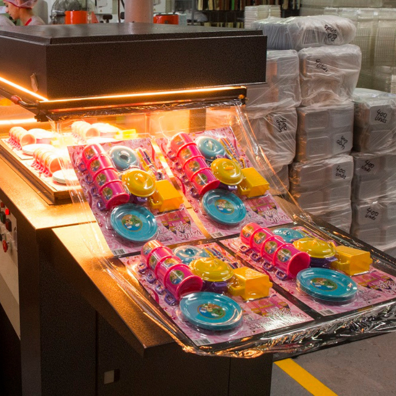 Utilizamos un sistema en el que colocamos el producto sobre una base rígida (generalmente cartón) y se cubre con una película plástica transparente que, mediante vacío y calor, se ajusta perfectamente a su forma, como una “segunda piel”.